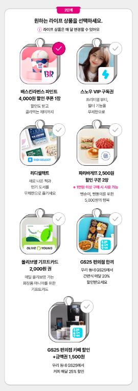 배스킨라빈스 파인트 4,000원 할인 쿠폰, 스노 VIP 구독권 등이 있었습니다.