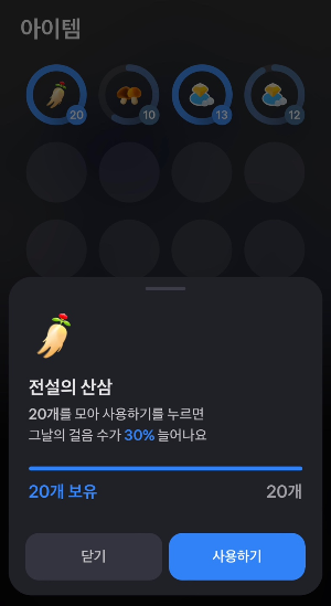 전설의 산삼을 사용하는 날에는 걸음수가 30% 증가합니다.
